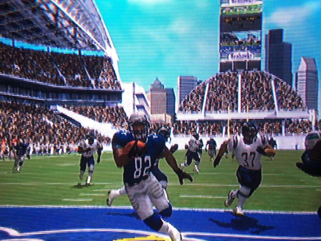 Another fun thing: If the home team is getting trounced, the cardboard cut-out fans — who look like they’re doing the most uncoordinated “The Wave” at all times — will begin to thin out during the 4th quarter. That’s a nifty detail, as well.