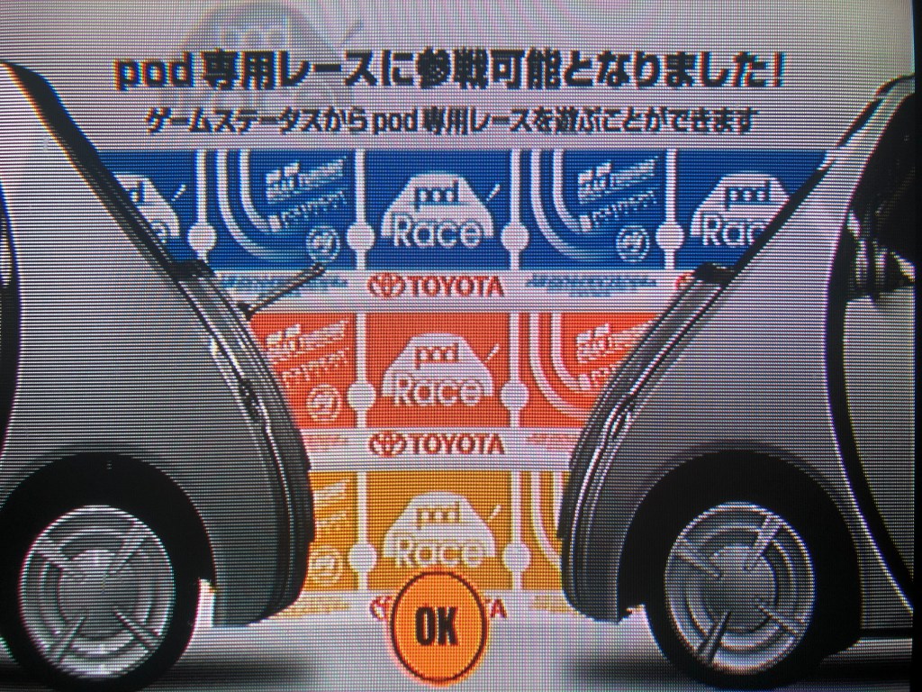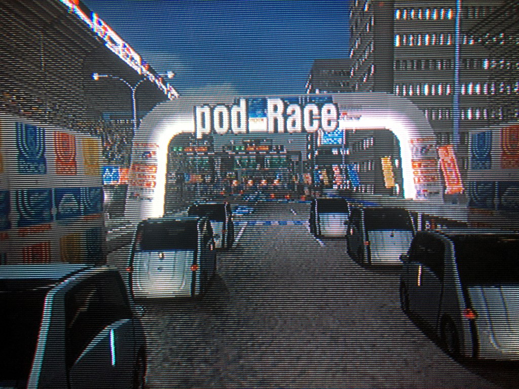 As a Gran Turismo game, GT Concept is fairly unremarkable. It features a handful of courses, several dozen cars, and its game modes include single race, free run, two-player versus, and license test; the latter is a lap time trial for unlocking vehicles. I recently bought the original 2001 Tokyo version of GT Concept, but apparently the 2002 Tokyo-Seoul and Tokyo-Geneva versions are loaded with a lot more cars and things. Not that it really matters to me — I’m really just here for the Pod. So after a couple of dusty, winding laps through the Tahiti Maze II rally course, it’s finally mine.