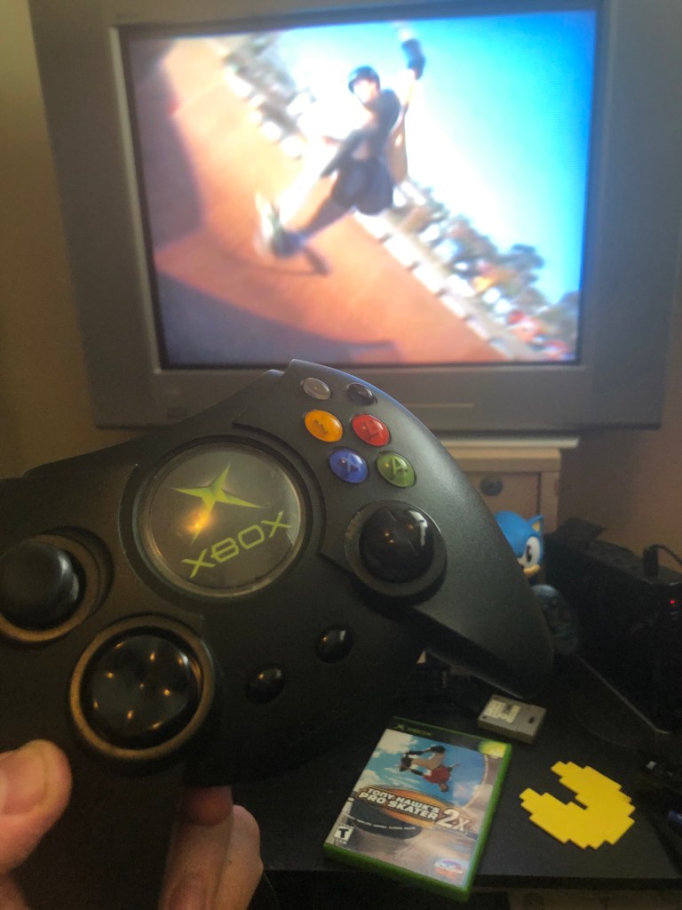 The Duke only: I’ve worn out my share of Microsoft’s sensibly comfortable S-type controllers over the years. The S is still a solid gamepad and I rarely use anything else when playing OG Xbox games. On the other hand, the notoriously bulky Duke controller has always been clunky and cumbersome, and it’s especially ill-suited for games requiring rapid, precise inputs like THPS. At the very least, I figured it’d at least inject a little chaos into the mix and jar me out of complacency with some added unpredictability between my actions and intent. On that, the Duke delivered.