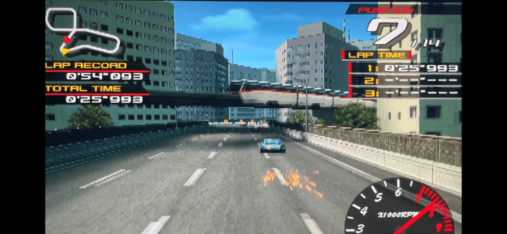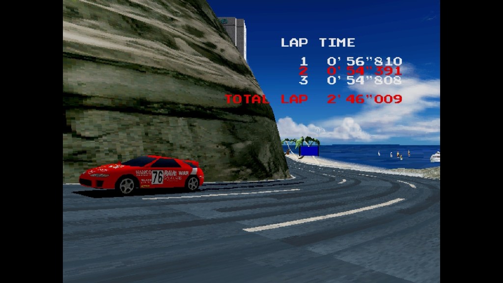 It was a Namco sampler compilation featuring a readaptation of the original PlayStation Ridge Racer from 1994/1995, which itself was an adaptation of the original 1993 arcade racer. However, this version was revamped and truncated for a smooth, 60 frames-per-second experience. It would be my first foray into the series’ (real racing) roots.