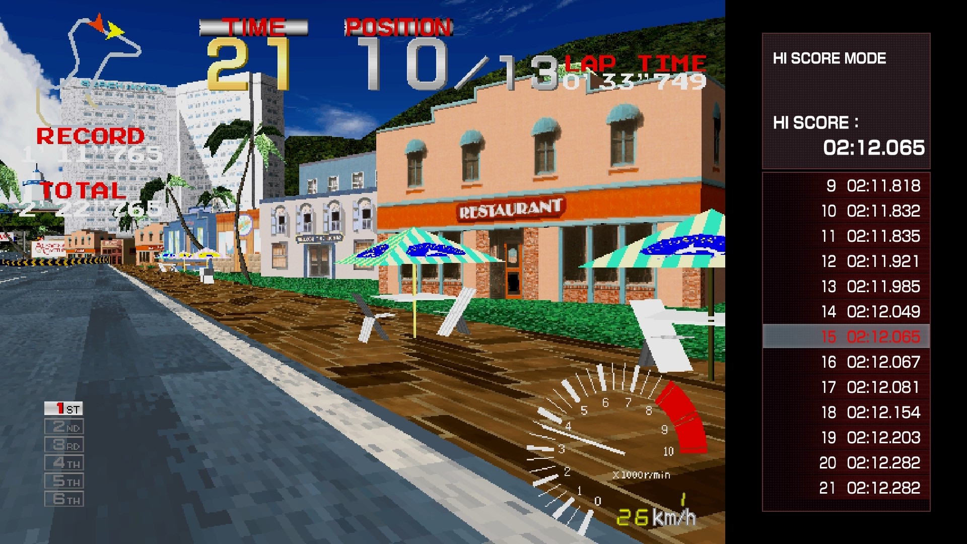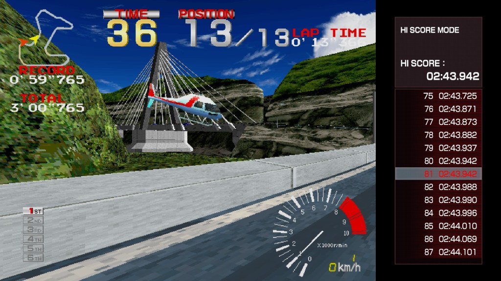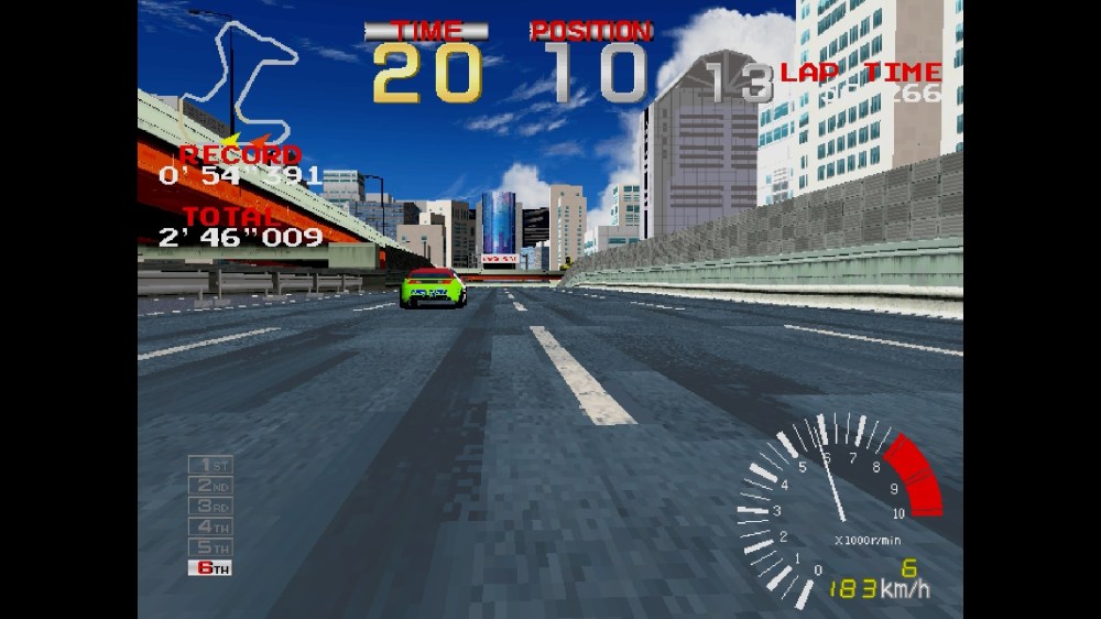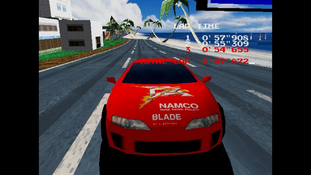 I continue to find the original Ridge Racer’s setting every bit as inviting as its legendary peers, Daytona USA and Sega Rally Championship. Standing amid their pantheon, Ridge City shatters any notion that Sega had a monopoly on blue skies vibes.