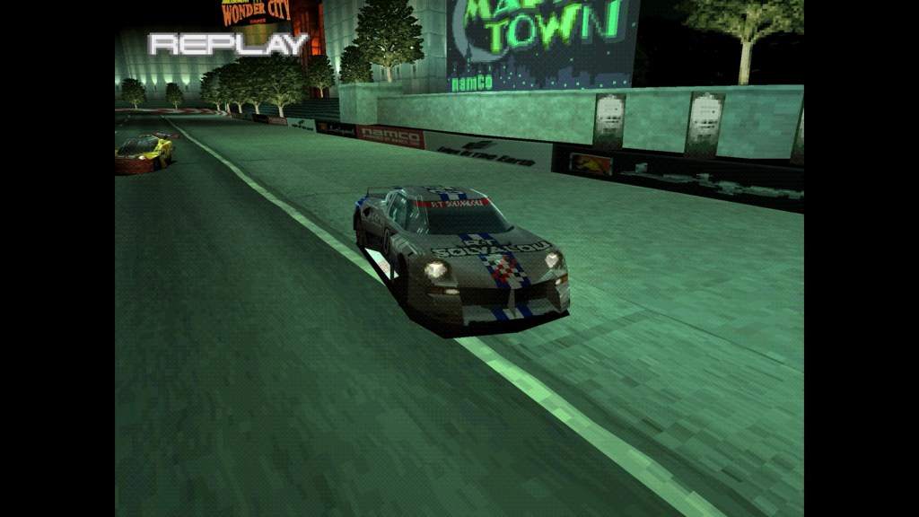 Many inventive — if rudimentary — early 3D games like the original Ridge Racer challenge us to interpret their spaces more actively, and place ourselves in worlds they may have struggled to depict in great detail. They empower us — not only to suspend our disbelief — but to apply more of our imaginative selves to the experience. In this way, the original Ridge City remains an unlikely playground for our curiosity.
