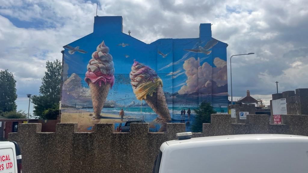 I learned what was true of the beach towns I grew up with in the US seems to be (mostly) true of ones here in the UK. Their weathered facades and food stalls have perpetually seen better days. The good ice cream shops almost always have a queue. Seagulls on the promenade will snarf your chips if you get complacent. And the moment your feet sink into the soothing sand, nothing else matters.