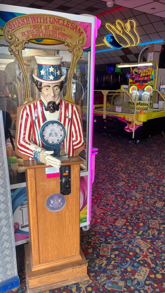 That’s not to say there aren’t some key differences. When beachside amusement centers brand themselves as “family” destinations, I was used to that meaning “for kids” in the States. They generally focus on attractions like carnival games, bumper cars, drop-claw machines and the like. These UK arcades have those in spades but their game floors are also packed with slot machines and adults-only gambling areas to flank the toddler horsey rides and air hockey tables. Apparently when Brits say an arcade is “family friendly” they mean the whole fuckin’ family.